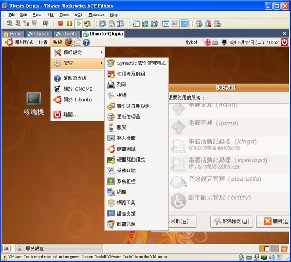 在Ubuntu中所在為:系統 -> 管理 -> 服務