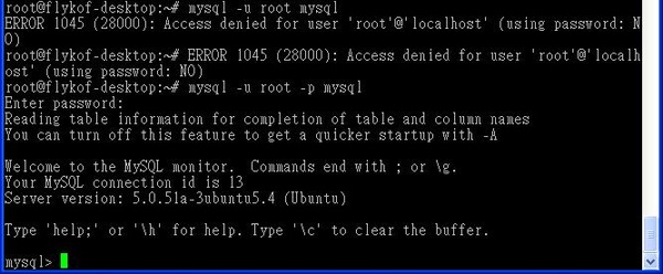 安裝好並啟動MySQL之後,可以利用以下的命令來測試結果: