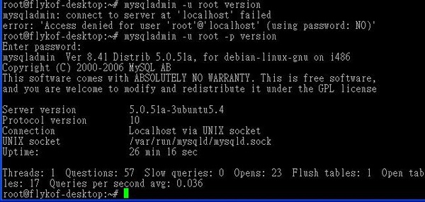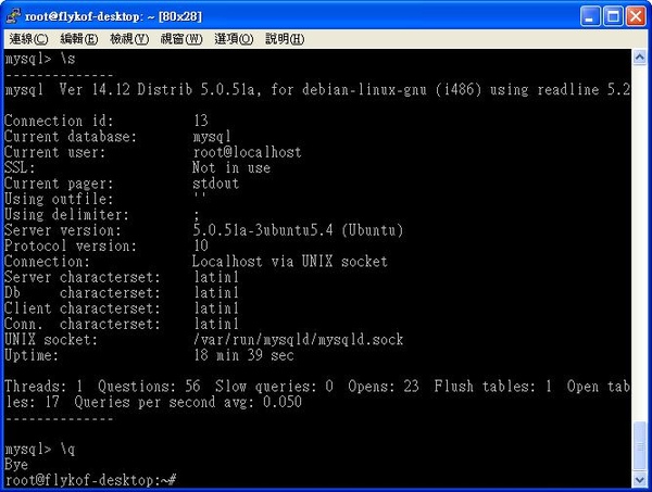 也可以利用mysqladmin命令,檢查伺服器的狀態: